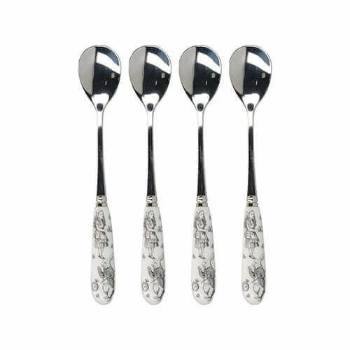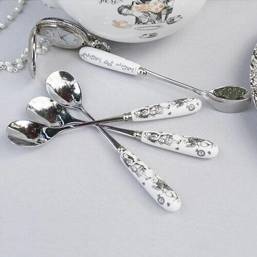 The handles are decorated in beautifully hand drawn illustrations, featuring the Alice and the White Rabbit and features the quote ‘Curiouser and curiouser’.