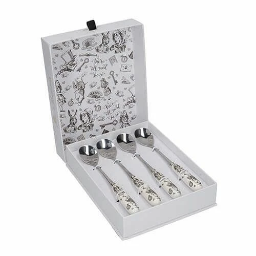 The set of four teaspoons are presented in a luxuriously illustrated matching gift box, with a ‘pull me’ tab to let the adventure begin.