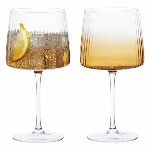 The Anton Studios Set of 2 Empire Gin Glasses in Amber adopt the style of the classic Empire range. They have an elegant ombre design to them, with a ridged, mouth-blown bowl and a thin, delicate stem that meets a flat base of the bowl, which adds to the sophisticated style of these glasses.