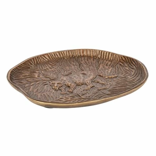 This Artesa embossed serving dish features a detailed leopard design with a luxurious gold finish.