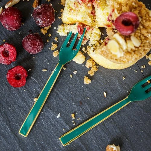 The Artesa Enamel Green Set of 4 Serving Forks are perfect for serving afternoon tea with cakes and desserts and are light and comfortable to use.