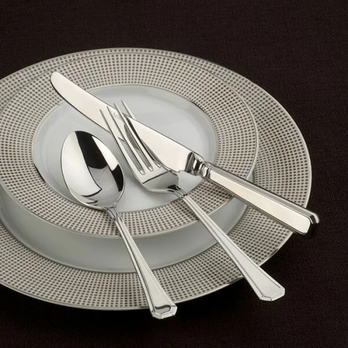 Arthur Price Classic Grecian Cutlery – exceptional design heritage. First produced during the Art Deco period, the Grecian pattern reinterprets the geometry of classical Greek architecture through its bevelled edges and angular corners.