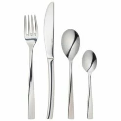 Arthur Price of England Sovereign Silver Plate. The very best and most luxurious silver plate cutlery on the market, with a silver thickness of up to 40 microns. Unconditionally guaranteed for life and will offer a richness of patination, in time, that is beyond compare. Dishwasher Safe. Old English evolved in the 1750’s from the Rattail pattern. The ‘pip’ seen on the front of the fork handle appears on the reverse of the spoon because, in the Georgiam era. spoons would have been laid face down on the table.