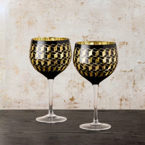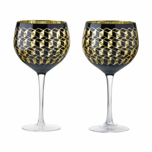 The Artland Cubic Gin Glasses are a statement set of glasses with a contemporary 3D geometric design adorned on the bowl of the glass to add flare .