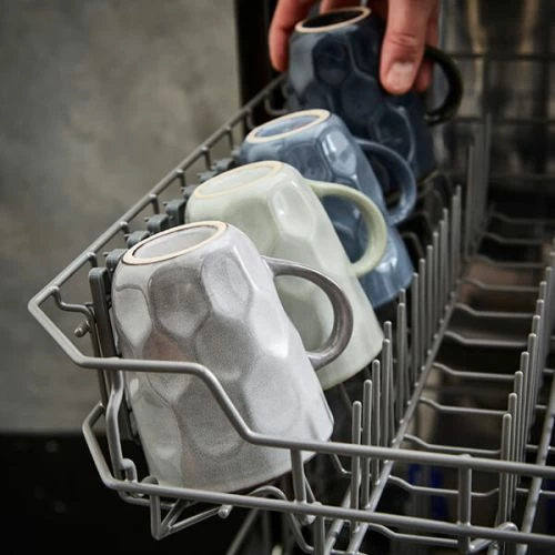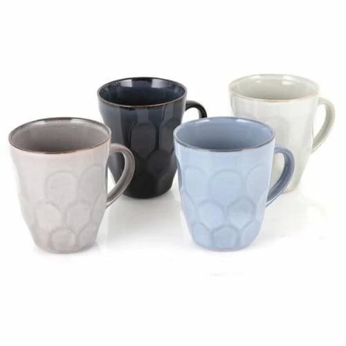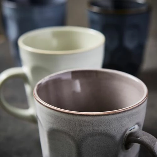 Each mug is unique thanks to its own individual dimple effect and the use of a reactive glaze. The natural colourways used add a subtle rustic charm to this 4 piece mug set.