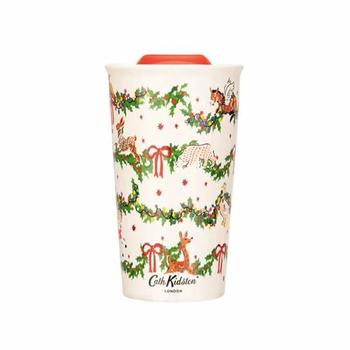 The Cath Kidston Christmas Ceramic Travel Mug is ideal for taking with you on the go to keep your cup of tea or coffee hotter for longer. It has a lovely design of seasonal garlands trailing around the mug with colourful lights and festive fauna. The lid can be closed to save any spillages while driving or walking.