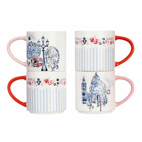 Cath Kidston London Set Of 4 Stacking Mugs