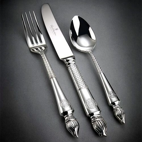 The table fork is made from high quality 18/10 stainless steel and features a silver plated finish with elegant embossing for a luxury finish to your table setting for that very special occasion.