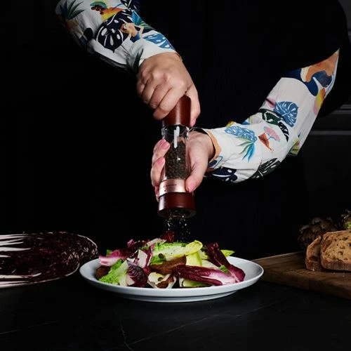 The Cole & Mason Derwent Chestnut Rose Gold Pepper Mill is stylish and sleek and looks great as part of your table setting. Perfect for adding freshly ground pepper to your home cooking and meals at the table.