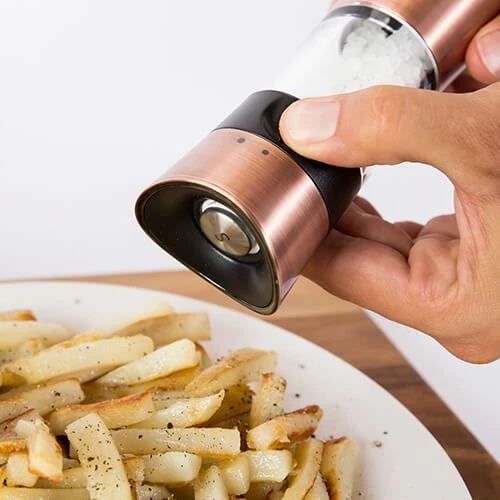 The modern design and copper and acrylic materials give this mill a contemporary styling that will look good in any kitchen or dining room.