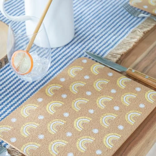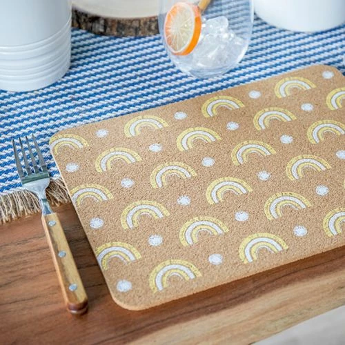 This Creative Tops set of 4 cork placemats are strong and durable and printed with a colourful rainbow motif.