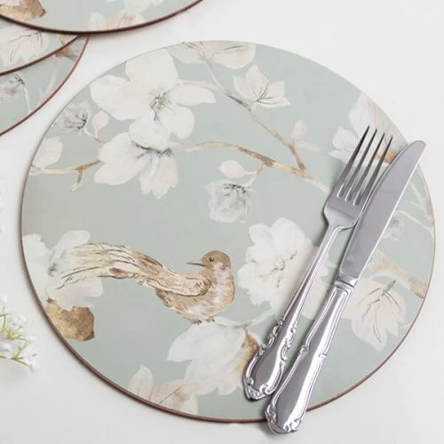 Creative Tops Duck Egg Floral Set of 4 Premium Round Table Mats