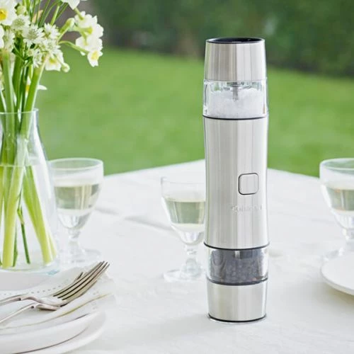 Featuring two containers, which can be easily removed, you can choose what seasonings to fill them with – salt, pepper, spices and herbs can all be used and the grind can be set from fine to coarse using professional ceramic grinding plates.