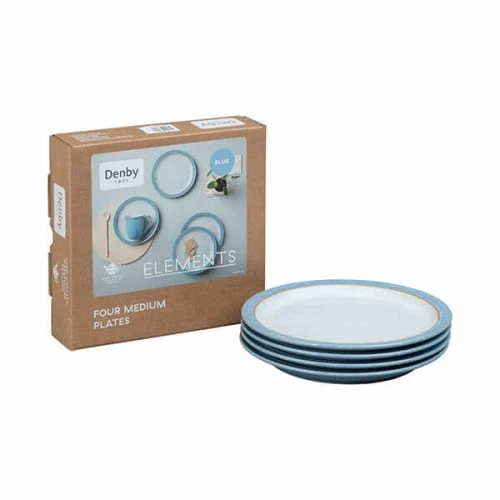 This Denby Elements Blue Set Of 4 Medium Plate is perfect for serving starters, toast, side dishes or even desserts.