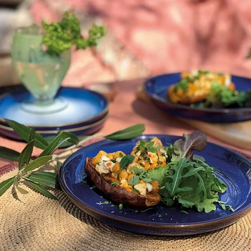 Vibrant blues and crisp whites make it a modern and bold classic with matching utensils and glassware also available.