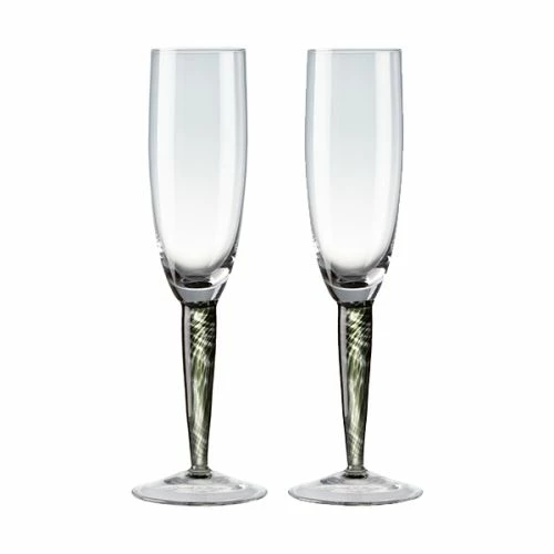Each glass features a stunning charcoal design on the stem and a 240ml capacity, ideal for serving champagne or prosecco.