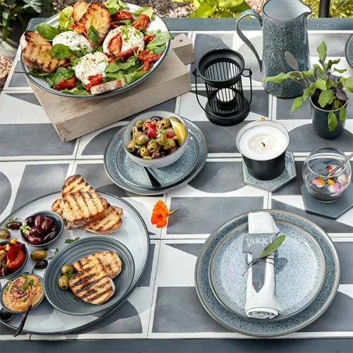 This contemporary Denby Studio Grey Coupe Dinner Plate makes food look beautiful.