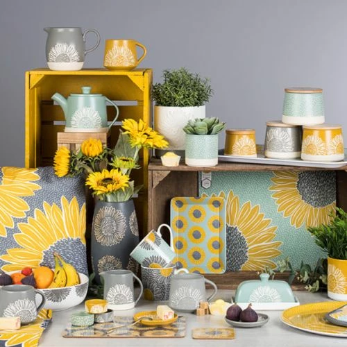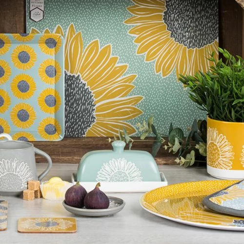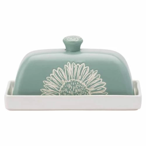 Featuring a delightful sunflower illustration that will add a ray of sunshine to any setting, this stoneware butter dish measures 17cm x 11cm x 10cm and can be teamed with coordinating items in the collection to complete the Artisan Flower look.