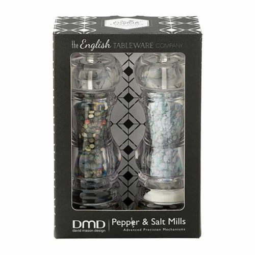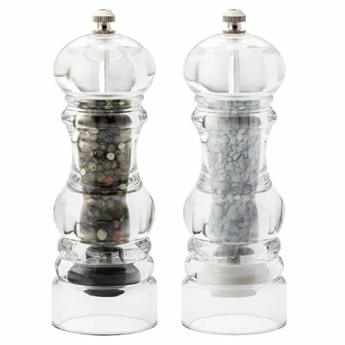 English Tableware Company President Clear Acrylic Salt & Pepper Mill Set, boasts a classic design style that will compliment both modern or traditional interior design. Designed in Great Britain, each mill boasts a clear encasement which allows you to see the peppercorns and rock salt, useful for when you need to refill the mills. Supplied in a gift box. Made from Acrylic. Measures 16.5cm high.