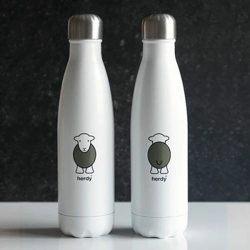 This Herdy Yan water bottle is great for taking drinks on the go on your adventures. Herdy’s face is on one side and the reverse of the water bottle with his tail and bottom on the back.