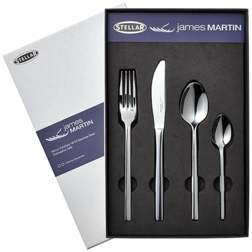 The James Martin cutlery pattern is a beautifully simple design, exclusively designed by James Martin, exhibiting refined taste and style, and promising a long life for its perfectly polished finish.