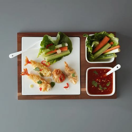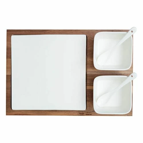 Versatile and stylish, the James Martin Denby 6 Piece Serving Set is perfect for a variety of salads and dips. A great addition to any dining table, this serving set includes 1x Acacia board, 1x ceramic plate, 2x ceramic bowls and 2x ceramic spoons.