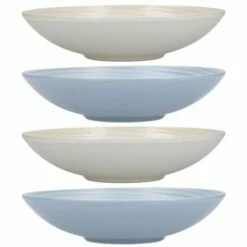 Each of the coupe bowls are 22cm / 8″ diameter and are suitable for heating and warming food in the microwave. The set of 4 blue and cream ripple coupe bowls are dishwasher safe for easy and convenient cleaning.