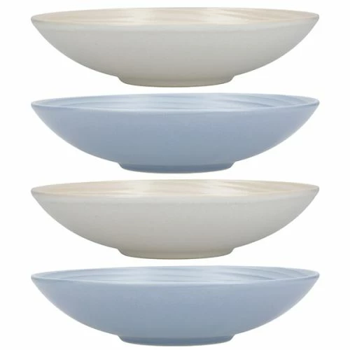 This set of 4 KitchenCraft stoneware ripple blue and cream coupe bowls are perfect for enjoying pasta, rice and noodles at home.