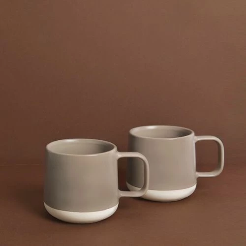 This two piece mug set features an ergonomic design in a two tone latte colour with a mix of gloss and matt finishes.