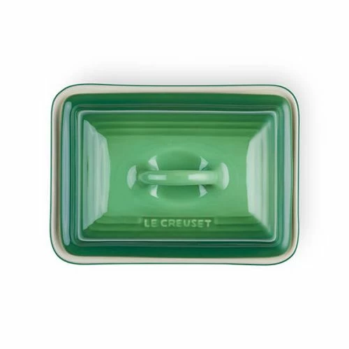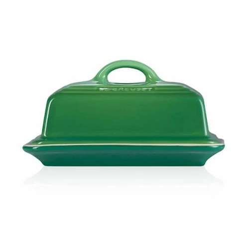 The Le Creuset Bamboo Stoneware Butter Dish is able to be taken from the fridge to the microwave to soften butter for easy spreading. Its stoneware construction also means it retains cooler temperatures longer.