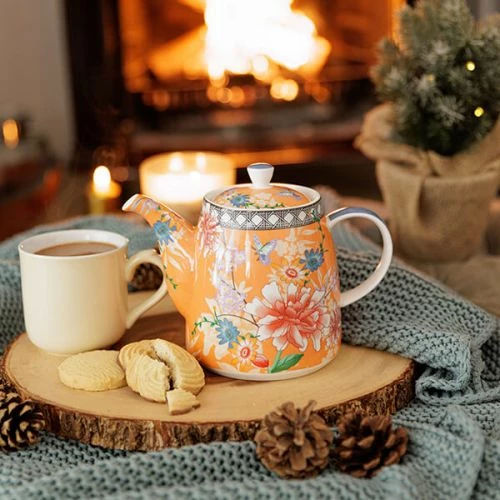 This delightful teapot also features a non-drip spout and includes a stainless steel infuser that is removable for cleaning and replacing. The teapot can therefore be used with tea leaves using the infuser and tea bags without the infuser.
