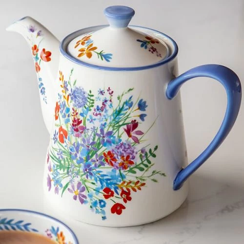 Made from delicate, yet durable ceramic, this 4 cup teapot is decorated with beautiful wildflowers, inspired by Birch’s love of the untouched, wildflower-dotted meadows of rural Transylvania and is enhanced further by accents of soft cornflower blue. Can be matched with other accessories in the London Pottery Viscri Meadow Collection.