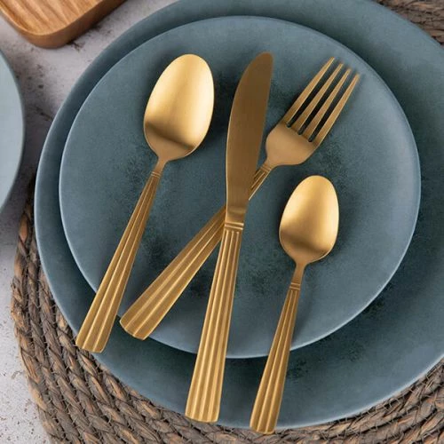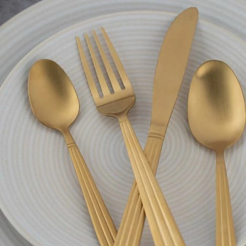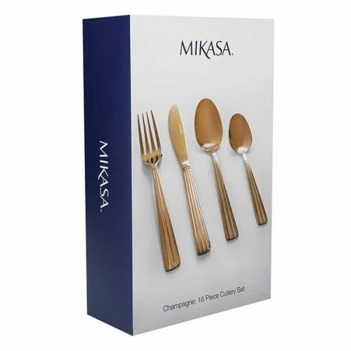 The Mikasa 16 piece stainless steel Champagne cutlery set is made from stainless steel with a high quality gold finish.