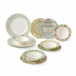 The Morris & Co 12 Piece Set brings an elegant floral arrangement into your dining room and kitchen with 4 x Standen design dinner plates, 4 x Mixed design side plates and 4 x Mixed design cereal bowls. With refined and unique mix-and-match designs, this dinner set is decorated in Morris & Co’s most well-known and well-loved designs that take inspiration from the brands infamous wallpaper designs.