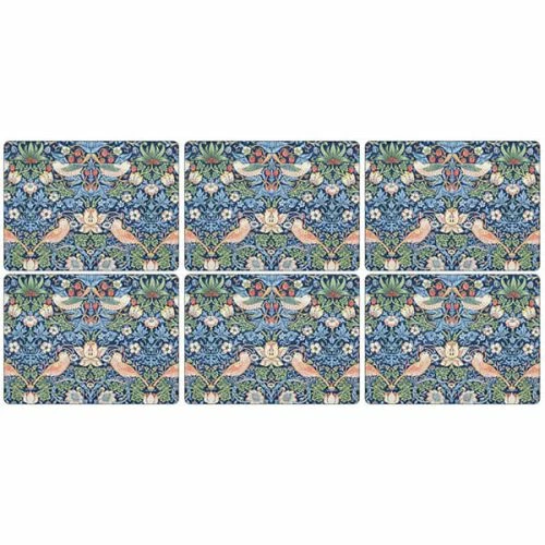 Keep your tabletop and surfaces free from stains with this beautiful Morris & Co Set of Six Strawberry Thief Blue Placemats.