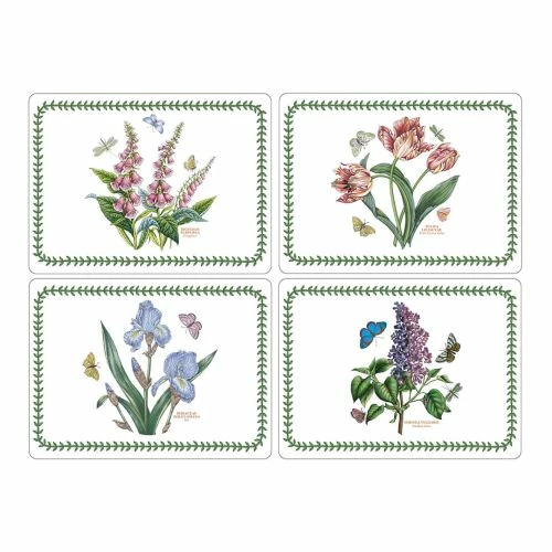 This Portmeirion Botanic Garden Set of 4 Large Placemats all feature a different floral motif on each placemat with the signature green edging.