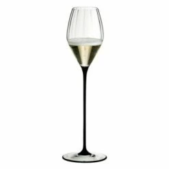 Riedel High Performance Champagne Glass in Black is perfect for light, fresh and dry champagnes. The shape of this champagne glass emphasises the wine’s fresh fruitiness while tempering its high acidity and brings out its characteristic red berry and pinewood aromas.