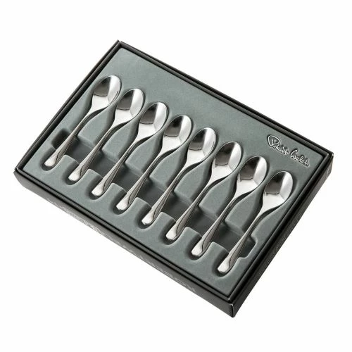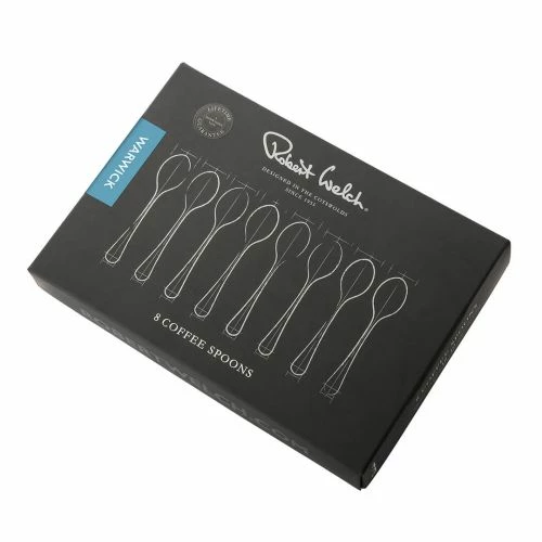 The Robert Welch Warwick Bright 8 piece coffee spoon set is perfect for presenting on a table setting with a mug for coffee and features a curved and well-balanced elegant style.