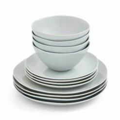 This Sophie Conran Arbor grey 12 piece set includes a 28cm dinner plate, a 21.6cm salad plate and a 15cm bowl.