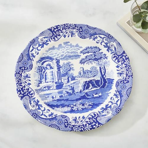 The Spode Blue Italian Buffet Plate adopts the classic Spode blue and white design in which the brand is renowned for. This plate has a unique design, capturing a historic scene inspired by the Italian countryside with an Oriental border that dates back to the 18th century.
