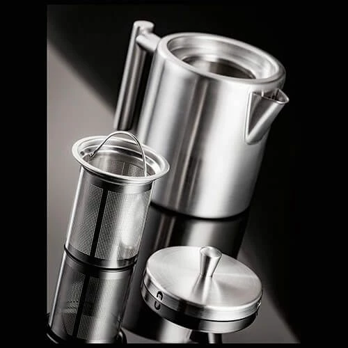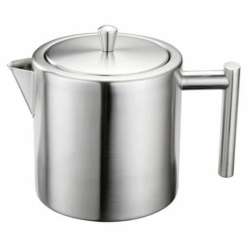 This 1 litre stainless steel 5 cup teapot features a removable filter basket for infusing loose tea leaves.
