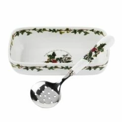 Portmeirion The Holly & The Ivy Cranberry Dish & Slotted Spoon