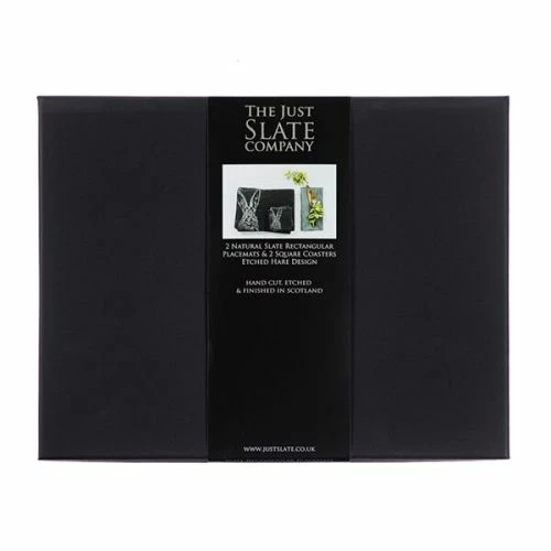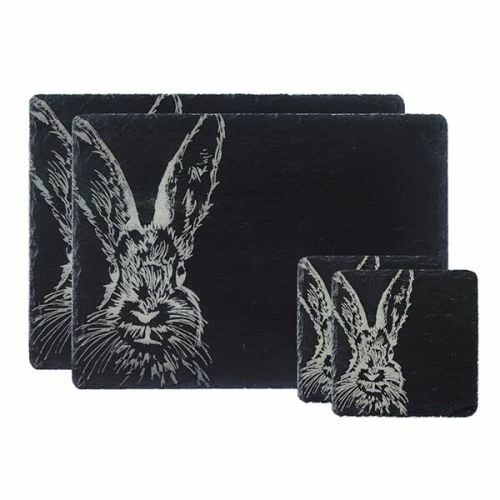 The Just Slate Company Hare Slate Coaster & Place Mat Set includes two place mats and two coasters.