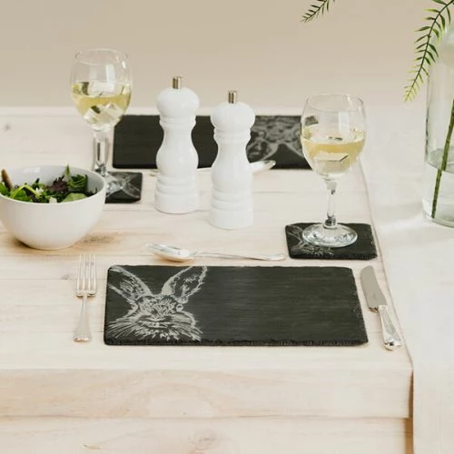 The Just Slate Company Hare Slate Coaster & Placemat Set
