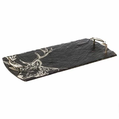 This high quality slate serving tray has been handcrafted in Scotland and is engraved with a noble and majestic stag.
