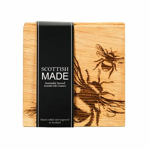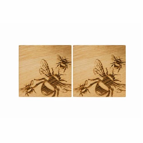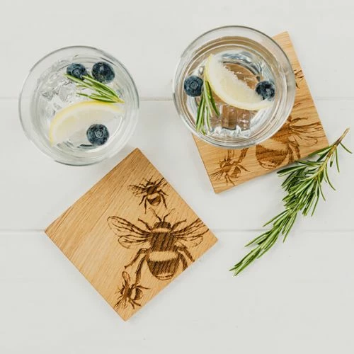 Handcrafted from sustainably grown Scottish oak, the Just Slate Company Set of 2 Bee Oak Coasters make a lovely table piece to set your drinks on. These beautiful wooden coasters feature an engraved, hand illustrated image of a bevy of buzzy bees.