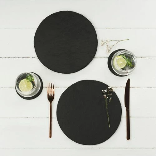 Combine the Just Slate Company Set of 2 Round Slate Place Mats with matching round slate coasters for a coordinated look.