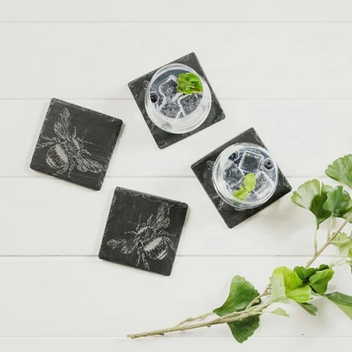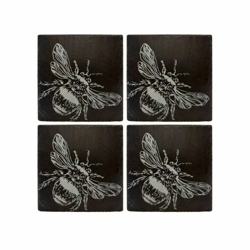 Beautifully handcrafted in Scotland, the Just Slate Company Set of 4 Bee Slate Coasters make a lovely table piece for your guests to set their drinks on. Each square slate coaster has been engraved with a stunning hand-illustrated engraving of a buzzing bee.
