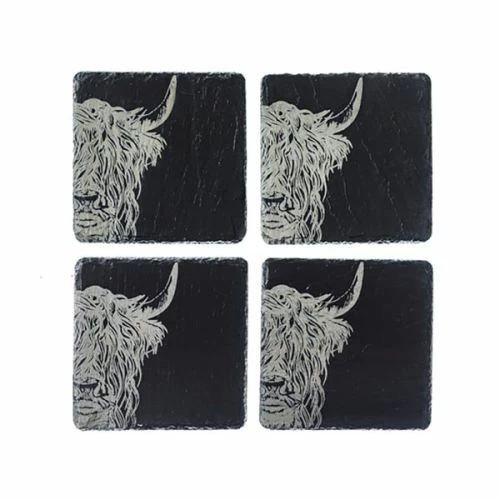 The Just Slate Company Set of 4 Highland Cow Slate Coasters