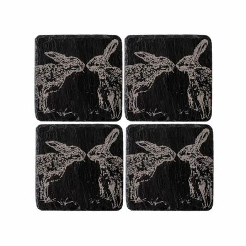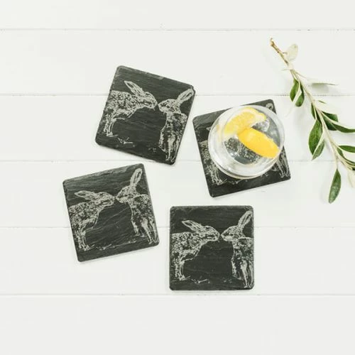 The Just Slate Company Set of 4 Kissing Hares Slate Coasters